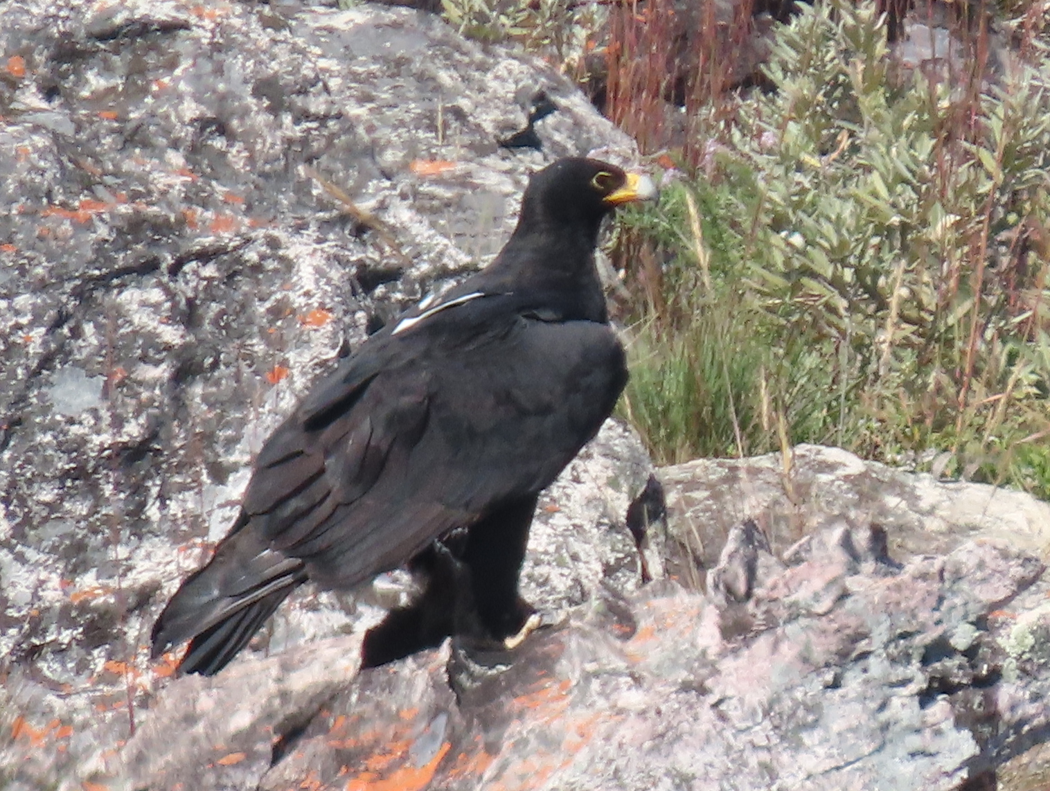 A small amount of water was flowing through a stream and over a moss-covered cascade at Pedras Negras, and it attracted a fine selection of birds, including Angola Waxbill and Broad-tailed Paradise-Whydah. But the highlight of the day was seeing the national bird of Angola, the endemic Red-crested Turaco; we had telescope views of a perched bird that then flew past below eye level in perfect light, displaying its brilliant crimson wing patches! Turacos possess two copper-based pigments, one red and one green, which are found in few other birds (nearly all blue and green colors in birds arise from microscopic physical structures rather than pigments).